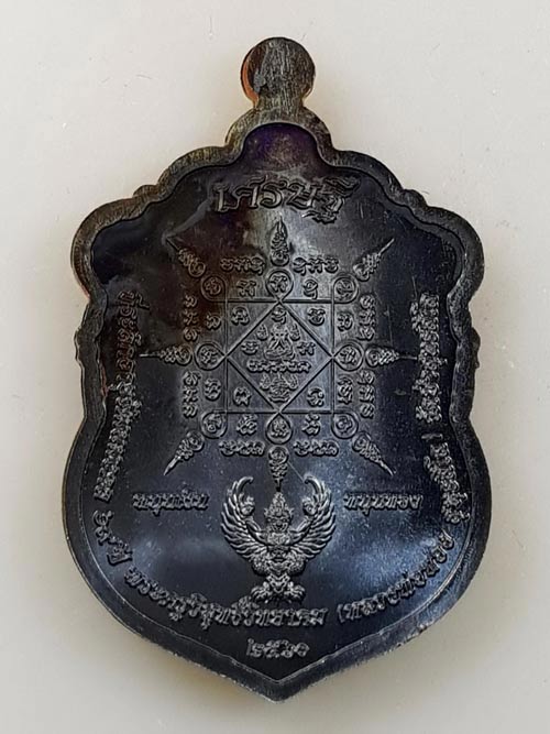 {วัดใจเคาะเดียวแดง}เสมา{รุ่นเศรษฐี} ลพ.ทอง สุทฺธสีโล วัดบ้านไร่} {กรรมการ16.3-}เนื้อ-ทองแดงรมดำ/หน้ากากทองทิพย์/ขอบทองทิพย์ เลข 483 {พุทธคุณยอดเยี่ยม-อำนาจ โชคลาภ บารมี}{4บารมีใน1เดียว ลพ.ทอง-พญาครุฑ