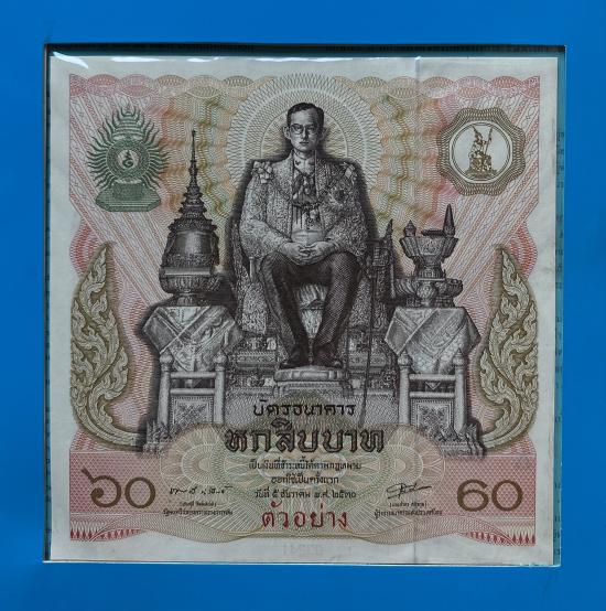 _“ธนบัตรตัวอย่าง ”_บัตรธนาคาร 60 บาท ที่ระลึกพระบาทสมเด็จพระเจ้าอยู่หัว รัชกาลที่ 9 เฉลิมพระชนมพรรษาครบ 5 รอบ _พร้อมปก_