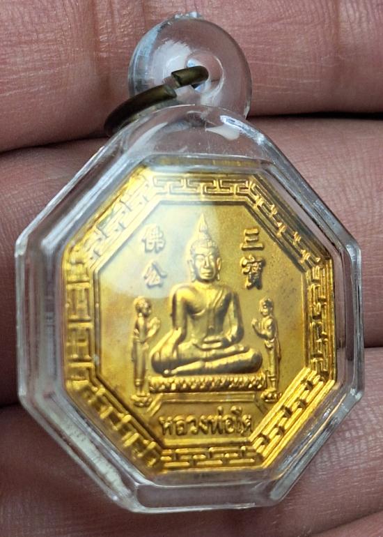 เหรียญหลวงพ่อโต หลังไท้ส่วยเอี๊ย ฉื่ตั้วไต่เจียงกุง กะไหล่ทองสวยมาก เลี่ยมพร้อมใช้