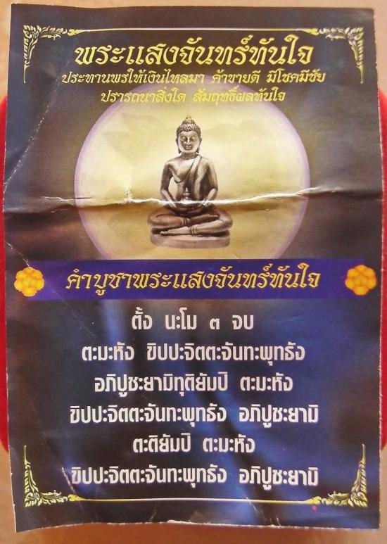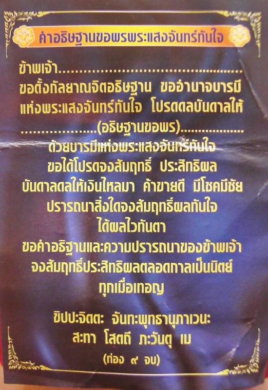 เมื่อวันมาฆบูชา วันที่ 18 กุมภาพันธ์ 2554 เวลา 15.39 น. ฤกษ์มาฆบูชามหามงคล พระราชญาณวิสุทธิโสภณ หรือ หลวงปู่ท่อน ญาณธโร แห่งวัดศรีอภัยวัน หนึ่งในสี่พระวิปัสสนาจารย์ที่อธิษฐานจิตพระกริ่งแสงจันทร์หรือพระกริ่งทุ่ง บางเขน รุ่นแรกร่วมกับหลวงปู่ฝั้น เมื่อปี 2512 ซึ่งถือได้ว่าเป็นครูบาอาจารย์สายกัมมัฏฐานอันดับต้นๆ แห่งยุคปัจจุบัน และเป็นหนึ่งเดียวในสี่รูปที่ยังมีชีวิตอยู่ เดินทางมาประกอบพิธีแผ่เมตตาอธิษฐานจิตพุทธาภิเษกสมโภช พระแสงจันทร์ทันใจ-พระแสงอาทิตย์ทันจิต สุดยอดมงคลศักดิ์สิทธิ์ที่สำคัญวัตถุมงคลรุ่นนี้ได้ผ่านพิธีอาบน้ำเพ็ญ พิธีสวดมนต์ข้ามปี พิธีรับเทพเจ้าแห่งโชคลาภ พิธีขอพรจากพระจันทร์และจะประกอบพิธีสุดท้ายในวันพระจันทร์เพ็ญมาฆฤกษ์ โดยหลวงปู่ท่อน ท่านได้เมตตาจารแผ่นทองมวลสารรุ่นนี้ด้วยตัวเอง เรียกว่าพระรุ่นนี้ผ่านการอธิษฐานจิต และปลุกเสกเป็นอย่างดี เหมาะจะนำไปบูชาเพื่อเสริมบารมีและโชคลาภเป็นอย่างยิ่ง ดีเด่นด้านค้าชาย โชคดีมีชัย ร่ำรวยทันใจ |