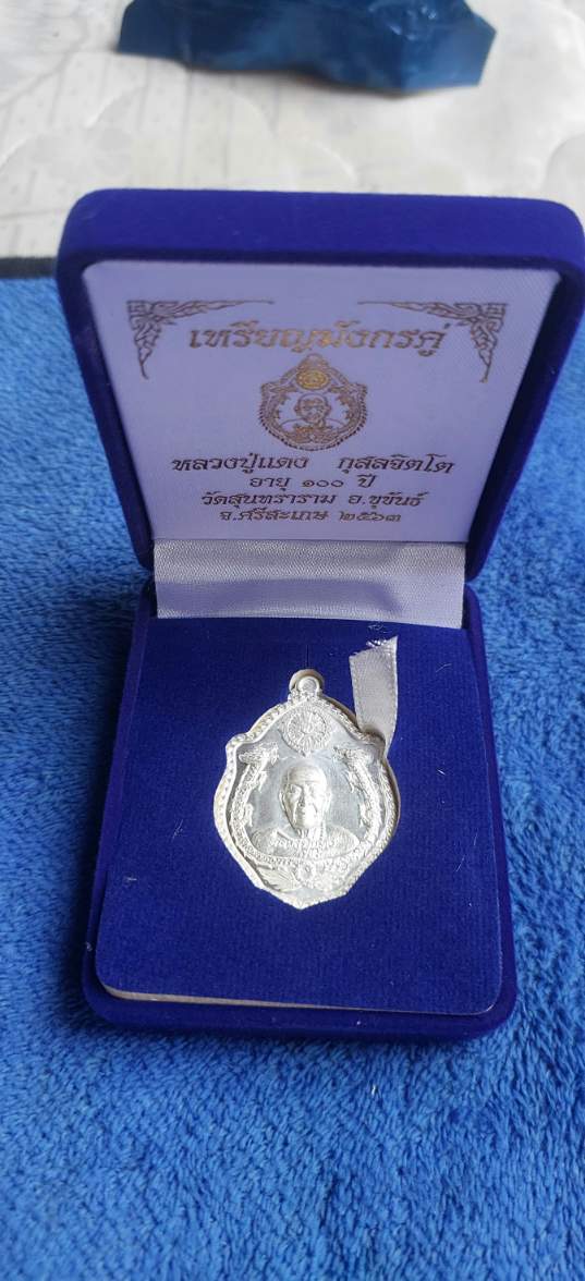 เหรียญมังกรคู่ หลวงปู่แดง วัดสุนทราราม ศรีสะเกษ เนื้อเงิน เลข 108 เคาะเดียว