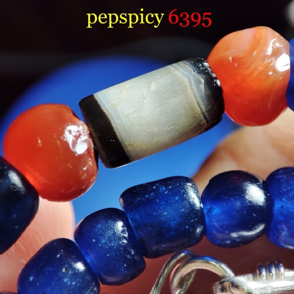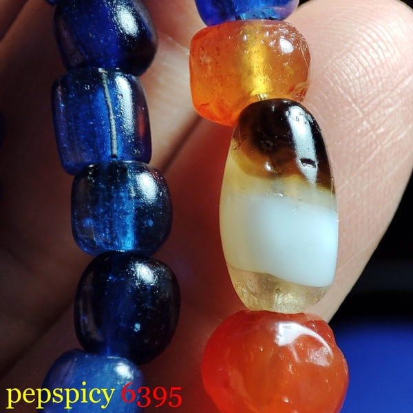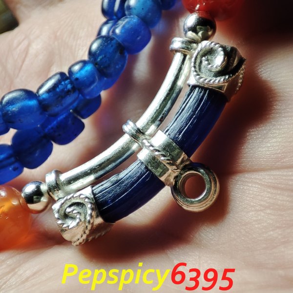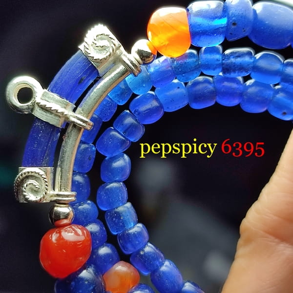 *เคาะแรกแดง* สร้อยลูกปัดแก้วโบราณยุคทวารวดีอายุกว่าพันปี คัดโทนสีน้ำเงินกษัตริย์ ร้อยประดับลูกปัดโบราณหินส้มคาร์เนเลียน หินอาเกต พร้อมคานห้อยพระชิ้นส่วนกำไลเนื้อลูกปัดแก้วโบราณจับเงินแท้สวยงามพร้อมใช้