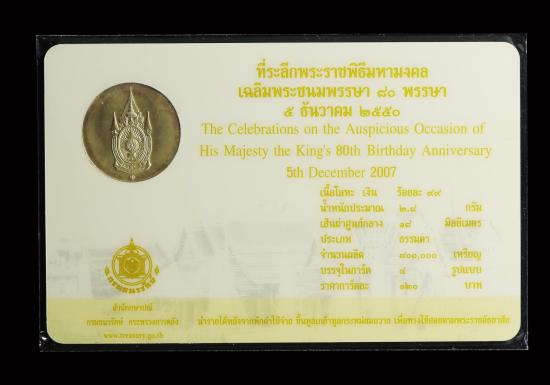2.เหรียญที่ระลึก พระราชพิธีมหามงคลเฉลิมพระชนมพรรษา 80 พรรษา ปี2550 ((( เนื้อเงิน ))) UNC *บรรจุในการ์ด*