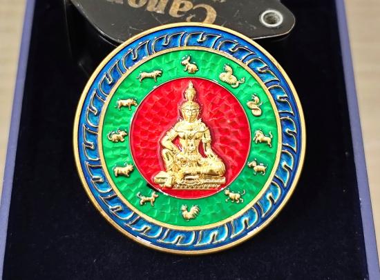 เหรียญจตุคามรามเทพ รุ่นดวงดี159 เนื้อชุบทองลงยา No.๓๓ พร้อมกล่องเดิม ขนาดเหรียญ 2.8 cm.