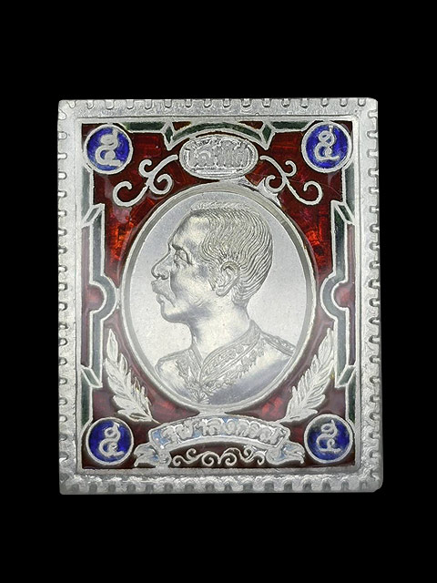 ***เหรียญแสตมป์รัชกาลที่ 5 (ร.5) เนื้อเงินลงยาแดง หลวงพ่อพุธ ฐานิโย วัดป่าสาละวัน จ.นครราชสีมา ปี 2536***