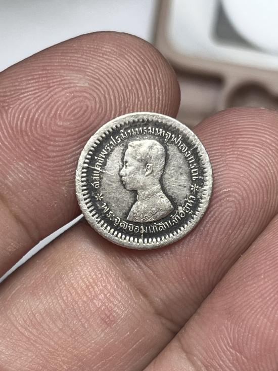 เนื้อเงินเหรียญเฟื้องรัชกาลที่ห้า ด้านหลังมีรอยเชื่อม สวยคมตามภาพแท้ดูง่ายครับ