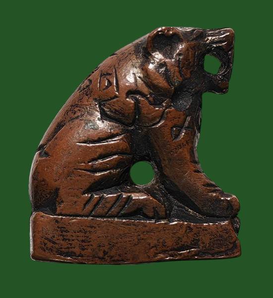 รายละเอียด เสือหลวงพ่อคง วัดวังสรรพรส รุ่นแรก พิมพ์เล็ก เนื้อตะกั่วชุบทองแดง ปี 2511 จ.จันทบุรี พร้อมบัตรG...