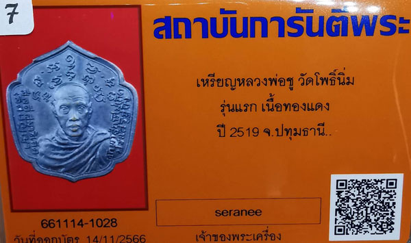 เหรียญหลวงพ่อชู วัดโพธิ์นิ่ม รุ่นแรก เนื้อทองแดง ปี2519 จ.ปทุมธานี + บัตรG-pra สภาพเดิมค่ะ พระสภาพตามรูปทุกประการค่ะ