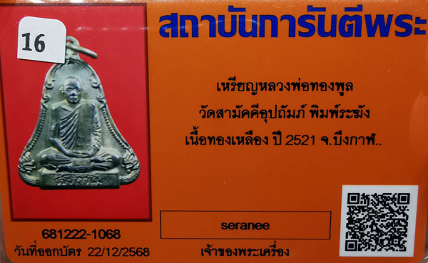 เหรียญหลวงพ่อทองพูล วัดสามัคคีอุปถัมภ์ พิมพ์ระฆัง เนื้อทองเหลือง ห่วงเดิม ปี2521 จ.บึงกาฬ + บัตรG-pra สภาพสวยเดิมค่ะ พระสภาพตามรูปทุกประการค่ะ