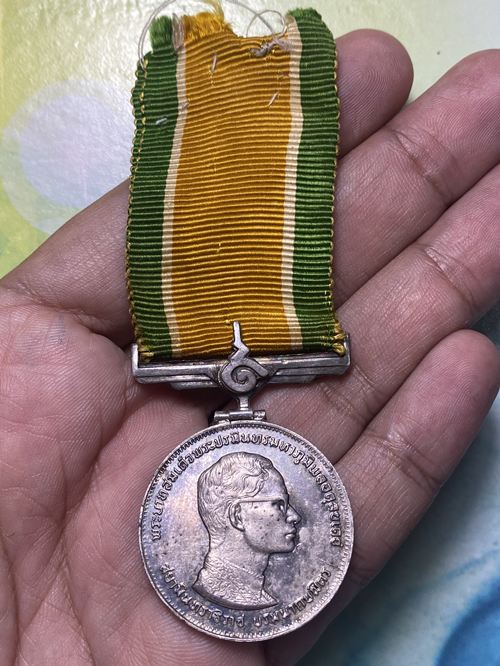 แพรแถบ ร.9 ที่ระลึกพระราชพิธีฉลองสิริราชสมบัติครบ 25 ปี (เนื้อเงิน)