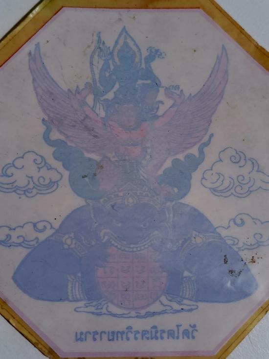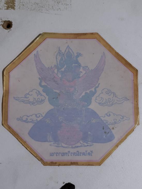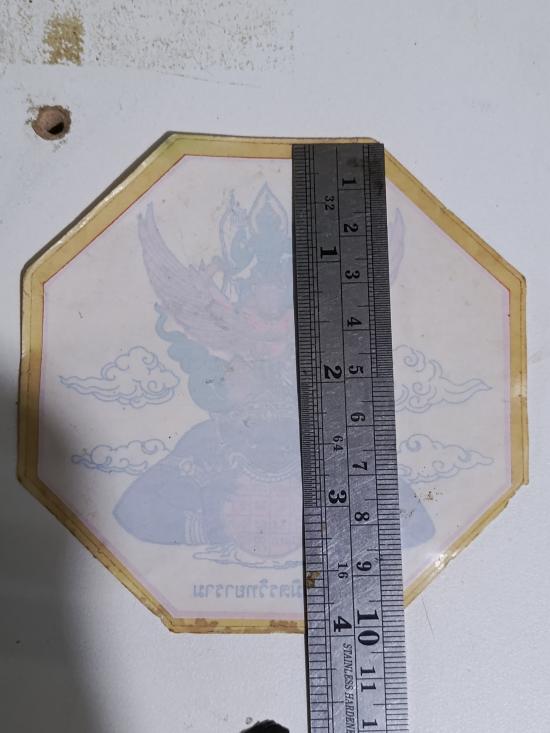 สติ๊กเกอร์ 8 เหลี่ยม รุ่นแรก พระนารายณ์ทรงครุฑประทับบนพระราหู พระพรหมมังคลาจารย์ (เจ้าคุณธงชัย) วัดไตรมิตรวิทยาราม ขนาด 10 มม.หายากติดรถได้ |