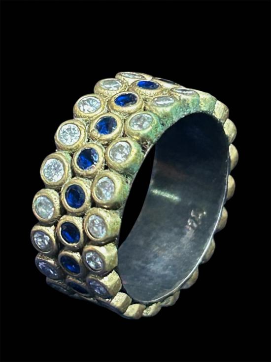 วัดใจ..100 แหวนทองเหลือง ฝังพลอย ปอกในเงิน ตอก 925 size 52 |