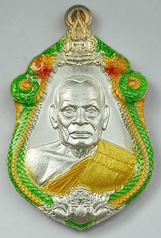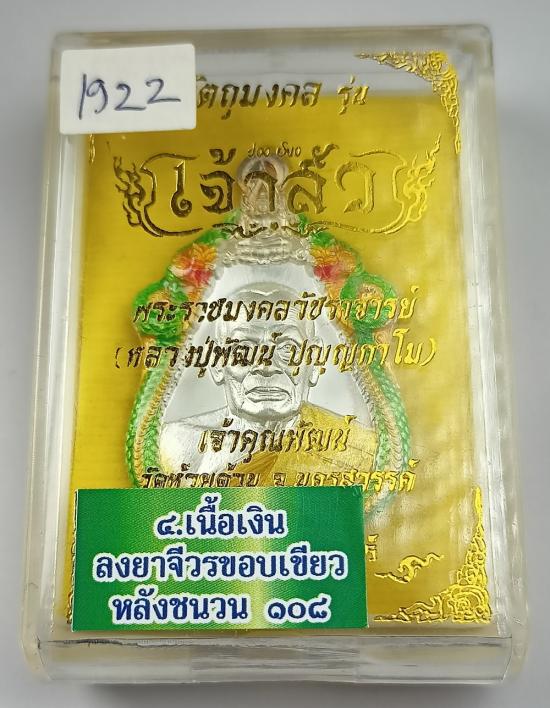 เหรียญ "เจ้าสัว" หลวงพ่อพัฒน์ วัดห้วยด้วน (จัดสร้างโดย บอย ท่าพระจันทร์) เนื้อเงิน ลงยาจีวรขอบสีเขียว หลังชนวน เบอร์ 1922 พร้อมกล่องครับ (เหรียญหนัก 18.56 กรัม)