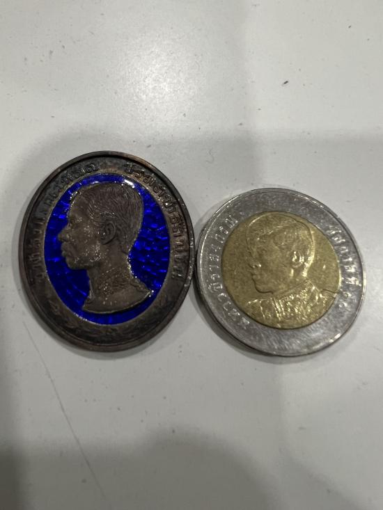 เหรียญ เนื้อเงิน ลงยา ร 5 พร้อมกล่องเดิม ครับ
