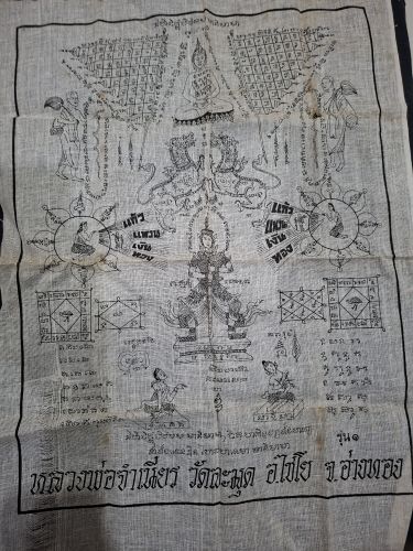 ผ้ายันต์ผืนใหญ่ หลวงพ่อจำเนียร วัดละมุด อ.ไชโย จ.อ่างทอง ไม่ทราบปี