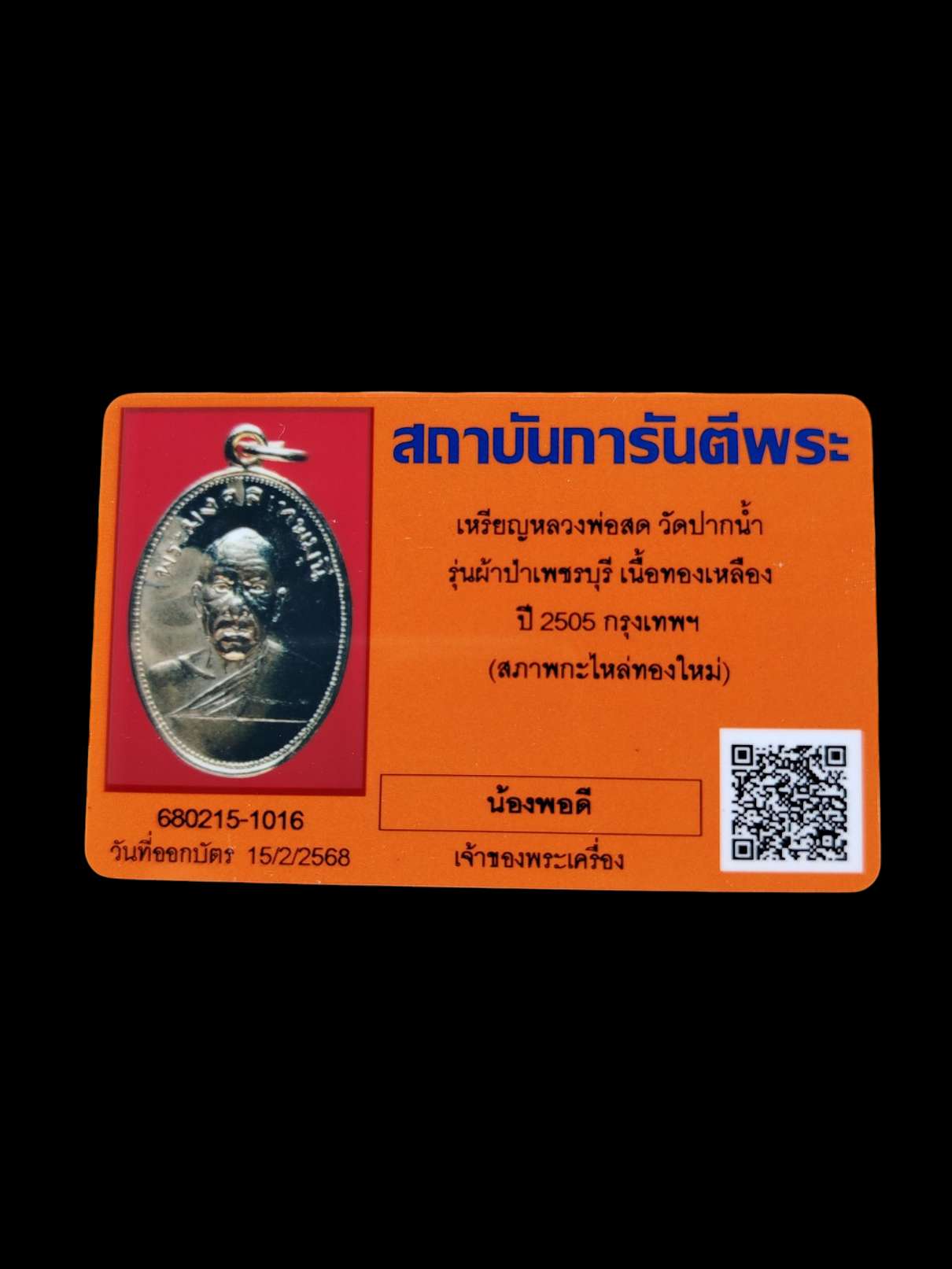 เหรียญหลวงพ่อสดวัดปากน้ำรุ่นทอดผ้าป่าเพชรบุรี 2505 มาพร้อมบัตรรับรอง กะไหล่ทองใหม่