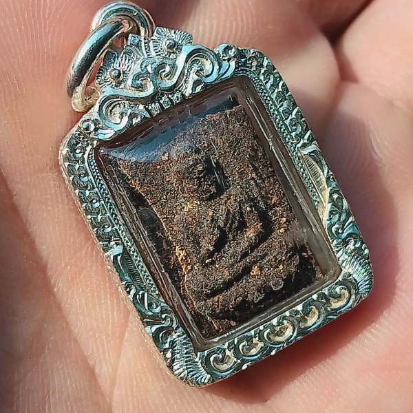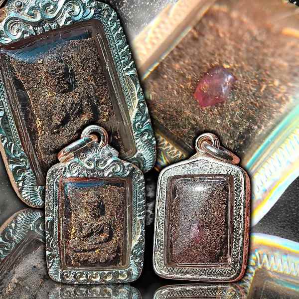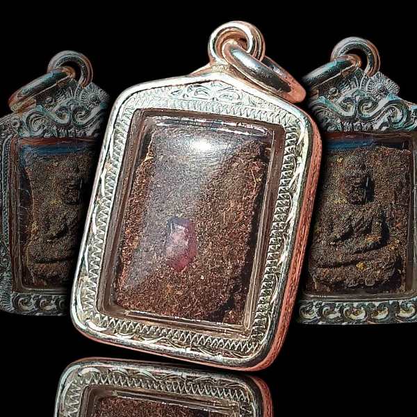 พระประธานพร หลวงปู่บัว ถามโก วัดศรีบุรพาราม จ.ตราด รุ่นแรก พ.ศ.2523 เนื้อว่านหยาบพิมพ์นิยม ว่านฟูๆ มวลสารแน่นๆ คมชัดสวย มีพลอยแดงแท้จากบ่อไร่ที่หลวงปู่ปลุกเสกด้านหลังหนึ่งเม็ด เม็ดใหญ่มาก ด้านในเลี่ยมกันน้ำ พร้อมกรอบเงินงานมือ พับหลัง หนาๆ นานๆจะมีเห็นในสนามสักองค์ รับประกันพระแท้