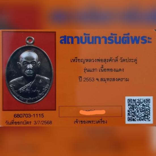 เหรียญรุ่นแรก พระมหาสุรศักดิ์ อติสกฺโข วัดประดู่ พระอารามหลวง พ.ศ.๒๕๕๓ เนื้อทองแดงชนวนผิวสวย สภาพสวยเดิมๆพร้อมรอยจารยุคต้นของหลวงพ่อ พร้อมบัตรรับรองจากเว็ปจีพระ รับประกันตามกฎ