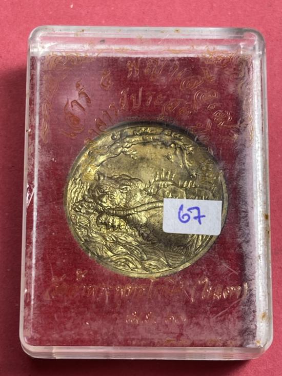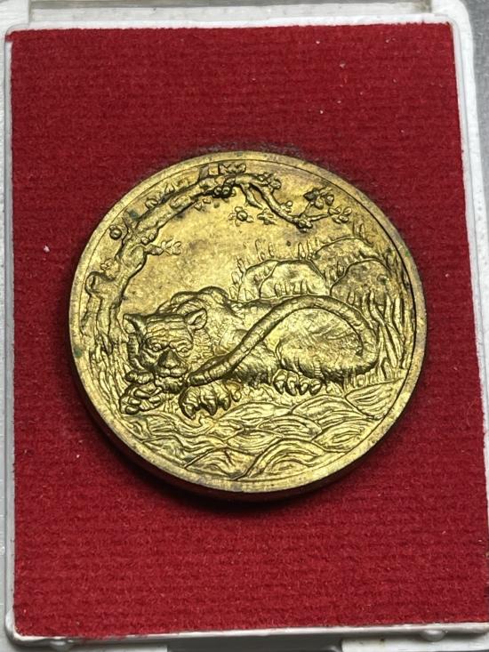 เหรียญพญาเสือเฒ่า เนื้อฝาบาตร พระอาจารย์ประสูติ วัดในเตา แช่น้ำมันเสือ