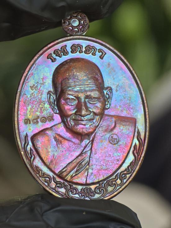 วัดความแรง...เหรียญครึ่งตัวหลวงปู่ศิลา รุ่นเมตตายุคต้นปี64 เนื้อทองแดงรุ้งแช่น้ำมันว่านฉ่ำ ผิวรุ้งเหรียญนี้คัดสวยมากไม่ได้เจอผิวแบบนี้บ่อย เลข3819 กล่องเดิม