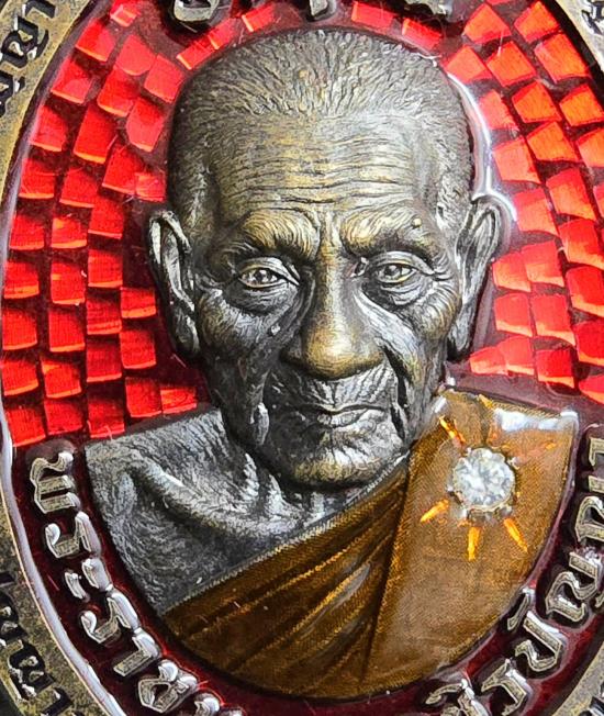 เนื้อนวะโลหะ ลงยาแดง จีวร ฝังเพชรสังฆาฏิ