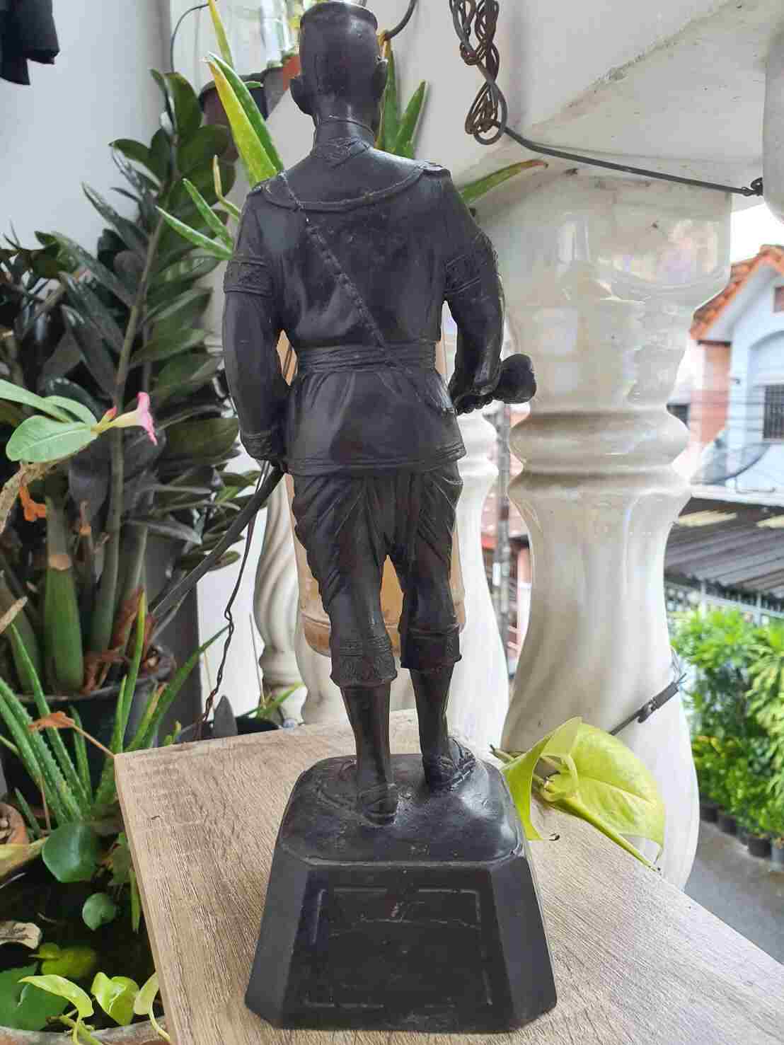 รูปหล่อสมเด็จพระนเรศวรไม่ทราบที่#เบ้าตาซ้ายหล่อไม่เต็ม ฐาน 4 นิ้วสูงประมาณ 12 นิ้ว |