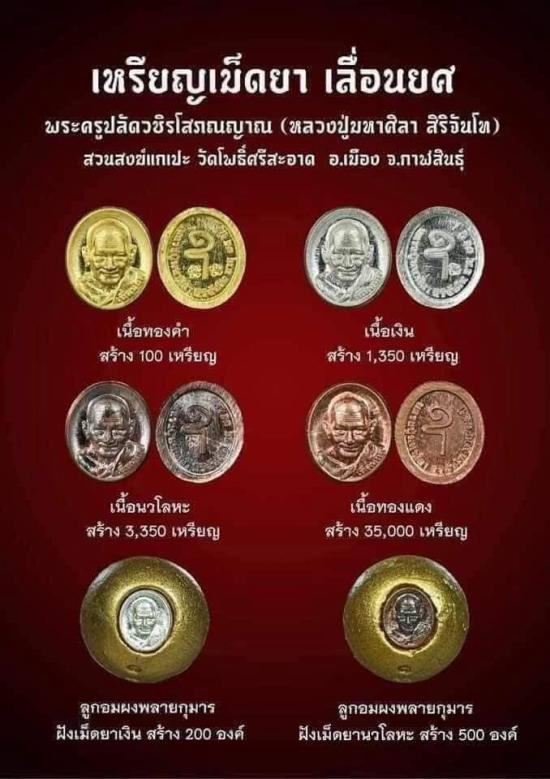 เหรียญเม็ดยา เลื่อนยศ ที่ระลึกงานไหว้ครูใหญ่ ปี๒๕๖๔ หลวงปู่มหาศิลา สิริจันโท สวนสงฆ์แกแปะ วัดโพธิ์ศรีสะอาด จังหวัดกาฬสินธุ์ ในงานพิธีใหญ่ ได้นิมนต์เกจิอาจารย์ เข้าร่วมในงานพิธีหลายรูป เช่น
