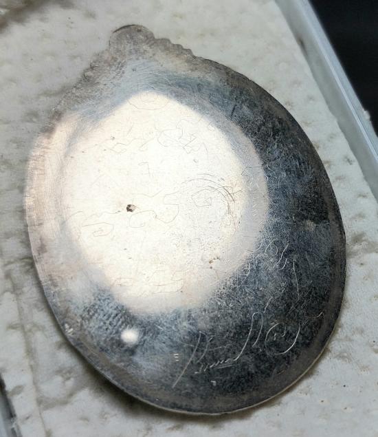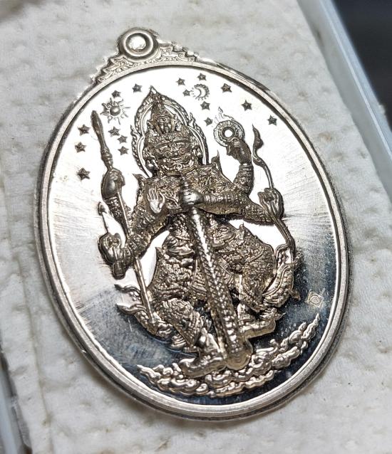 เหรียญท้าวเวสสุวรรณ พระอาจารย์คลังแสง สำนักสงฆ์เขากุฎิ เนื้ออัลปาก้าหลังเรียบ จารมือ |
