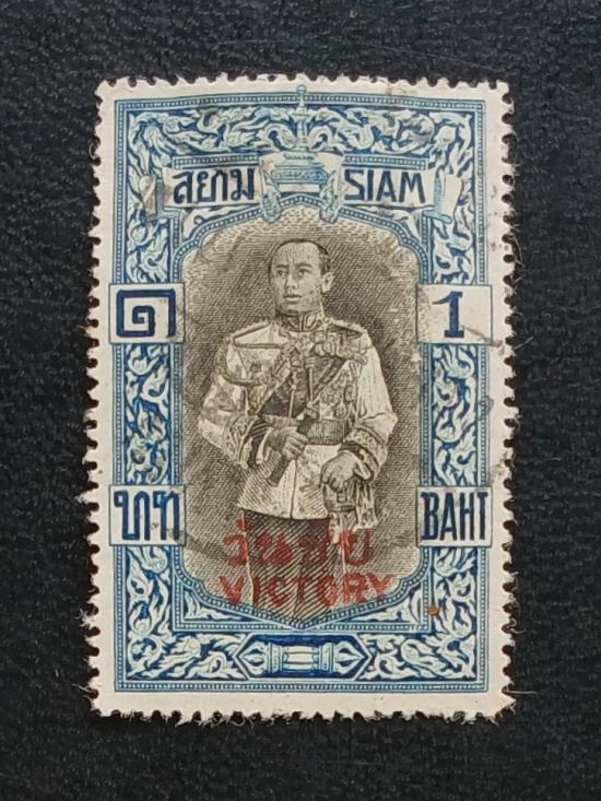 แสตมป์รัชกาลที่ 6 วันชัย ปี 2461 หน้าดวง 1 บาท หายาก ใช้แล้ว (คู่มือ 800)