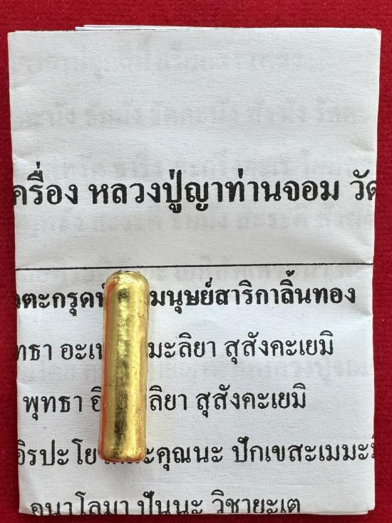 ตะกรุดหัวใจมนุษย์สาริกาลิ้นทอง หลวงปู่จอม "อมตะเถราจารย์อภิญญาณ ฤทธิ์" วัดบ้านดอนดู่ จ.อำนาจเจริญ....จารอักขระยันต์ครู เคลือบน้ำทองคุณ วิเศษกายสิทธิ์ ...ดียอดเยี่ยมทาง โชคลาภ ธุรกิจ-การค้าขาย มหานิยม มหาเสน่ห์ และแคล้วคลาด คงกระพัน...ขนาดกะทัดรัด งดงามน่ารัก...เหมาะ สำหรับเลี่ยมห้อยคอ...คุ้มครองป้องกันภัย...นำพา "โชคลาภ" ให้เงินทอง หลั่งไหลเข้ามา...ค้าขายดีนักแล..! (สวยมากๆ สวยเดิมๆ..!)..!! มีญาณฤทธิ์เข้มขลังเอกอุ ยอดเยี่ยมทาง เป็นเจ้านาย ยิ่งใหญ่ทาง มหาอำนาจ มีตบะเดชะ มั่งคั่ง ก้าวหน้า ร่ำรวย มั่งมีศรีสุข ป้องกันภัย อันตราย อุบัติเหตุ ภูติผีปิศาจ สิ่งอัปมงคลทั้งปวง เจริญด้วยโภคทรัพย์ ทำ มาค้าขายดี ทำมาค้าขายคล่อง เจริญรุ่งเรือง ตลอดจน แคล้วคลาด คงกระพัน มหาอุด...อธิษฐานพกพาบูชาติดตัว เสริมส่งบารมี