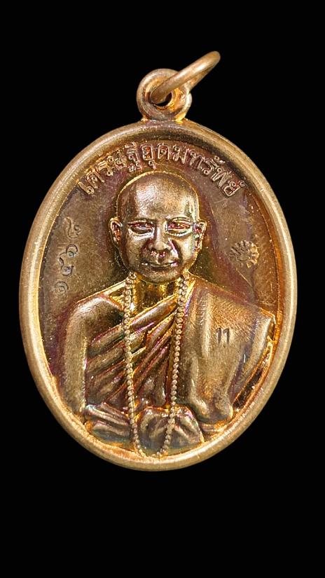 **100.** เหรียญเศรษฐีอุดมทรัพย์ ทองแดงหลังเรียบ หลวงปู่อุดมรัพย์(พระอาจารย์จ่อย) ศิษย์เอกหลวงปู่หมุน หมายเลข ๑๔๖๘ สวยๆครับ