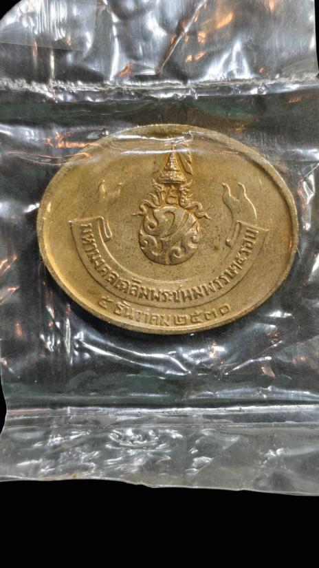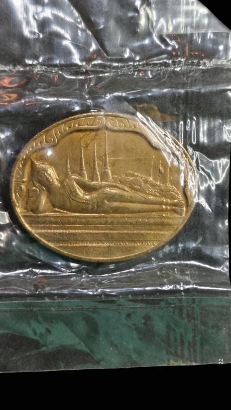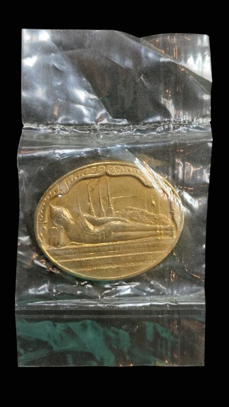 **100.** เหรียญพระนอน หลัง ภปร. พิธีใหญ่วัดโพธิ์ ฉลองในหลวงพระชนมายุครบ 5 รอบ พ.ศ. 2530 ซองเดิมซีลเดิม