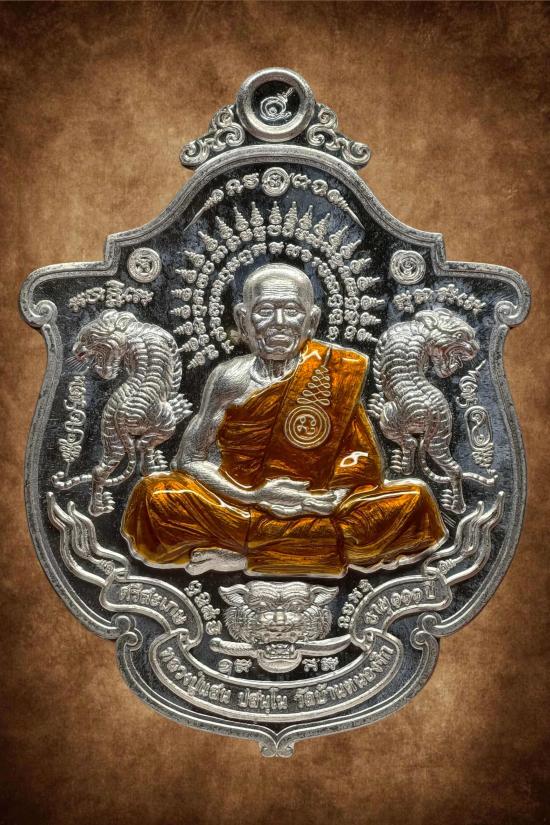 เนื้อเงินลงยาจีวร รายการลุ้นพิเศษ สร้างน้อย เลขจะลงท้ายด้วย 0,4,6 องค์นี้หมายเลข 50 พระสวยไม่มีตำหนิ รุ่นนิยม มีกล่องกำหยี่เดิมๆครบ