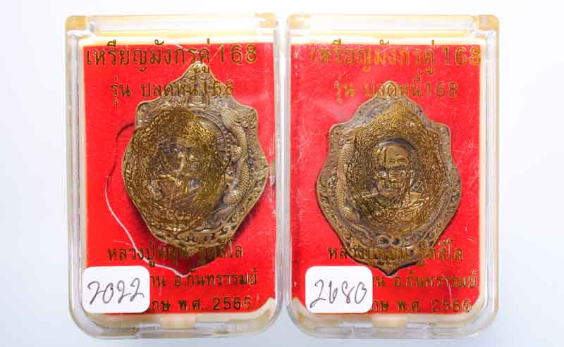 *ทีเดียว 2 องค์ ทองทิพย์รมซาติน เข้มขลังมาก เหรียญมังกรคู่168 รุ่นปลดหนี้168 หลวงปู่หมุน ฐิตสีโล ออกวัดบ้านจาน ปี66 เคาะเดียวแดง* |