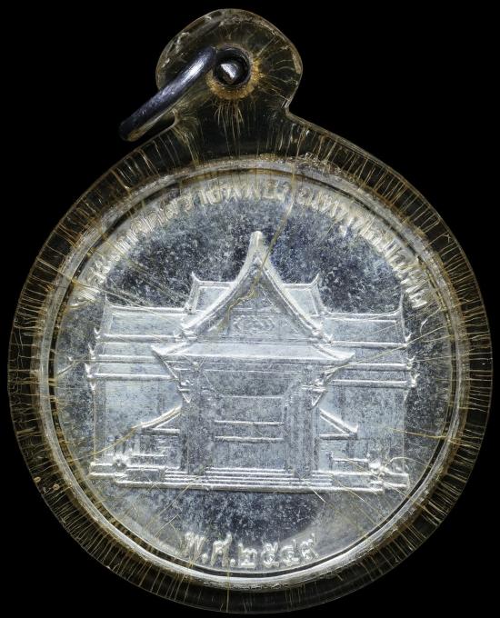 พร้อมอักษรคำว่า อัครศาสนูปถัมภก ด้านหลังเหรียญ เป็นรูปจำลองอาคารพิพิธภัณฑ์พุทธมณฑล ระบุ พ.ศ.2549