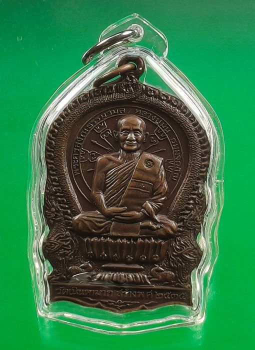 เหรียญนั่งพานหลวงปู่ม่น วัดเนินตามาก เนื้อทองแดง ปี2535 เลี่ยมพร้อมใช้ |