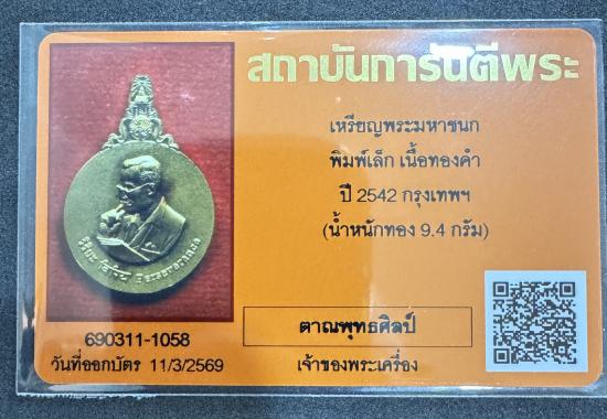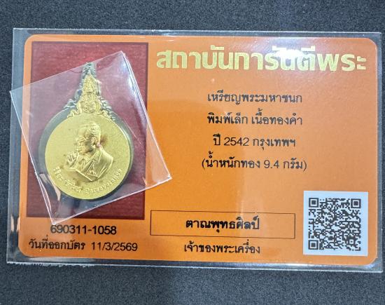 เหรียญพระมหาชนก พิมพ์เล็ก เนื้อทองคำ ปี2542 จ.กรุงเทพฯ