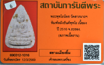 พระพุทโธน้อย รุ่น2 พิมพ์หลังยันต์พุทโธ ปี 2516 เคาะเดียว |