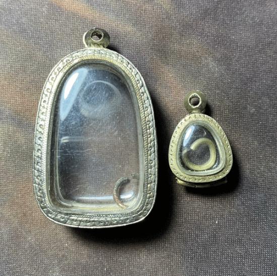 วัดใจของเหมามาขายถูกตามสภาพ ตะลับเงินผสม ใส่พระเปิมและใส่พระปิดตาขนาดเล็ก |