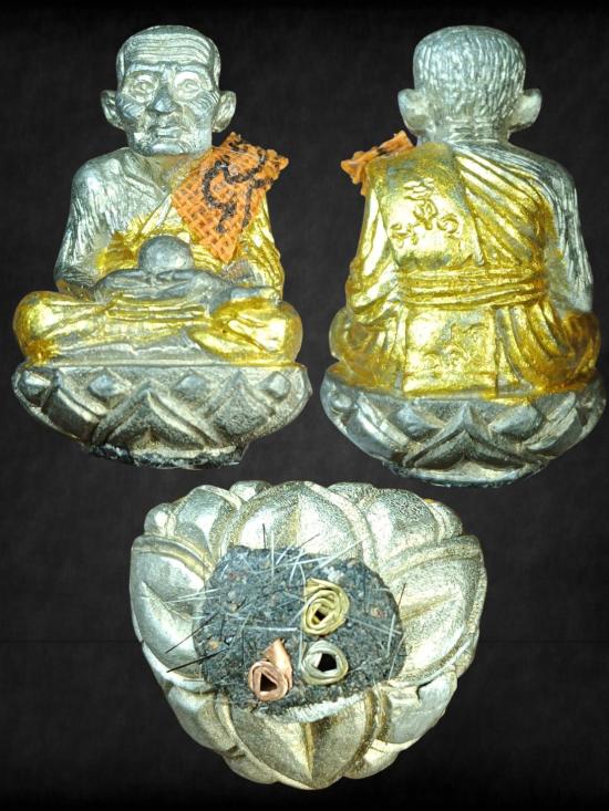 รูปหล่อเบ้าทุบ หลวงปู่ทวด-หลวงปู่ดู่ วัดสะแก จ.อยุธยา ปี 2540 เนื้อเงิน ก้นอุดตะกรุด 3 ดอก อัฐิอังคารธาตุหลวงปู่ดู่