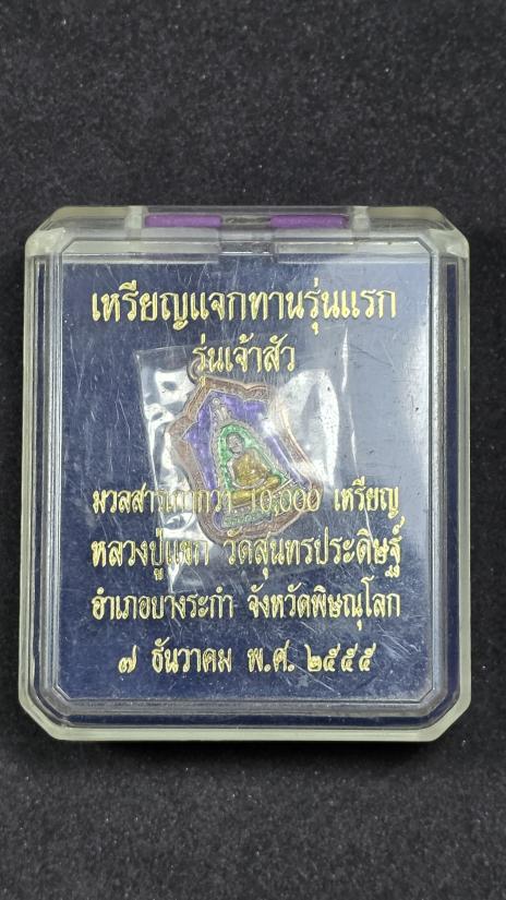 หลวงพ่อแขก วัดสุนทรประดิษฐ์ พิษณุโลก เนื้อเงินลงยา ตอกโค้ด ตอกเลข