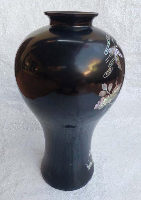 แจกันใบใหญ่ไฟเบอร์กลาส สีดำฝังเปลือกหอยมุกสไตล์เกาหลี
