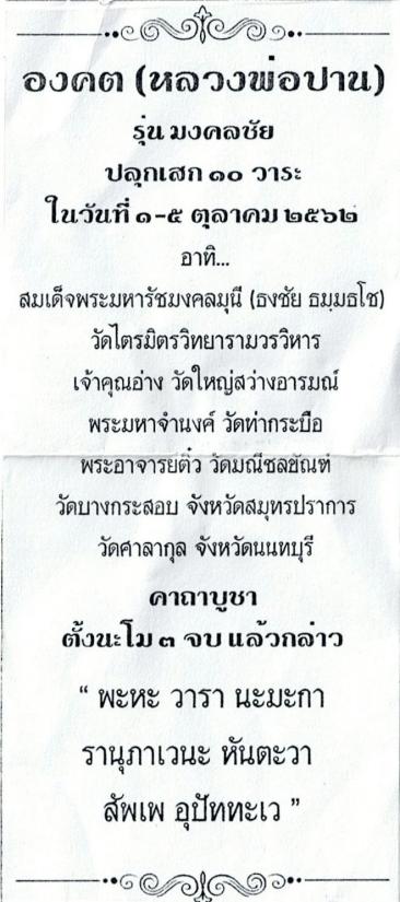 องคต(หลวงพ่อปาน) รุ่นมงคลชัย ปลุกเสก 10 วระ ปี2562 (1กระดาน 2องค์) |