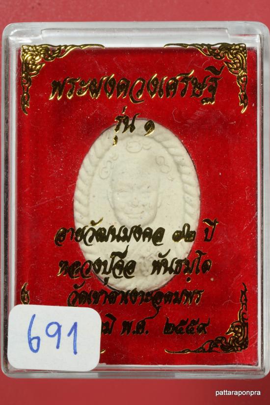 พระผงดวงเศรษฐี หลวงปู่จื่อ รุ่น ๑ ปี 2559 เนื้อผงสีขาว หมายเลข 691