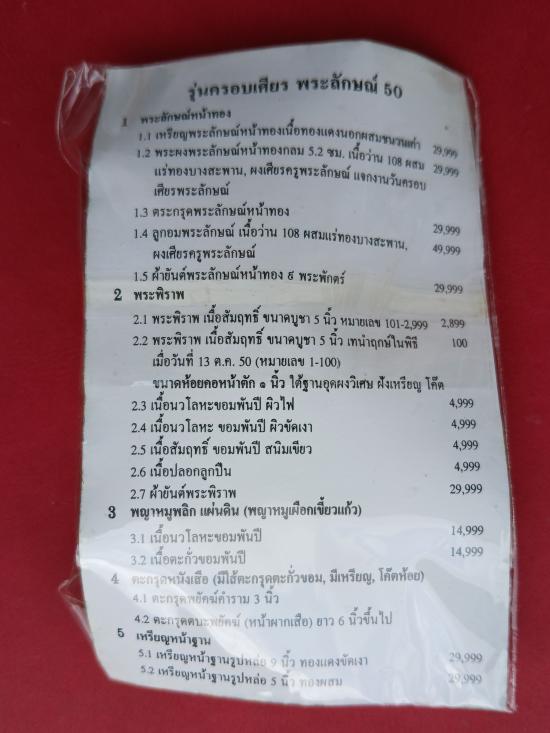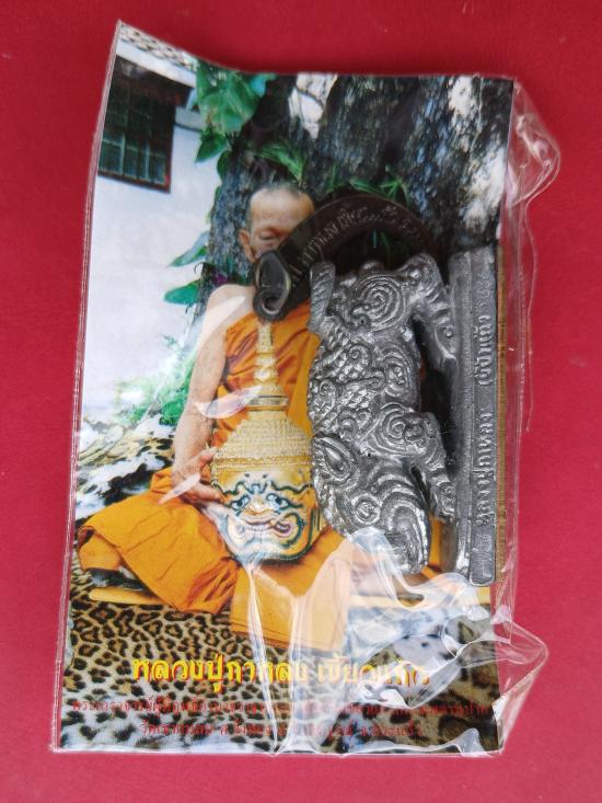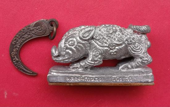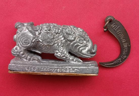 พญาหมูพลิกแผ่นดิน รุ่น 2 หมายเลข 336 เนื้อตะกั่วขอมพันปี รุ่นครอบเศียรพระลักษณ์ 50 มาพร้อมรูปหลวงปู่กาหลง ด้านหลังรายละเอียดการจัดสร้างซองเดิมครับ |