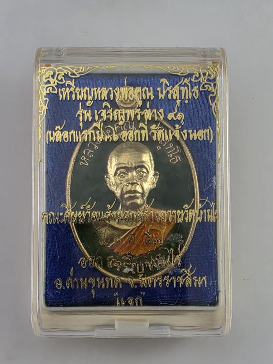 หลวงพ่อคูณ เจริญพรล่าง ปี57 เนื้อทองแดงกะหลั่ยทองลงยาสีเขียว ตอกแจก/พิเศษ |