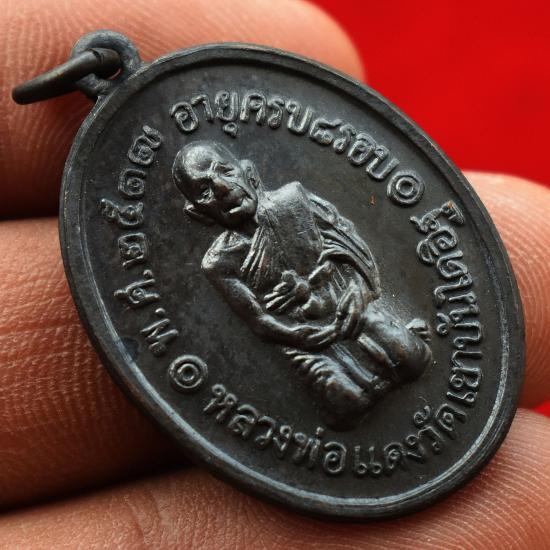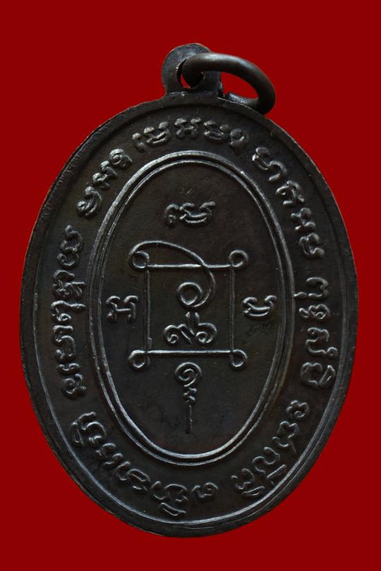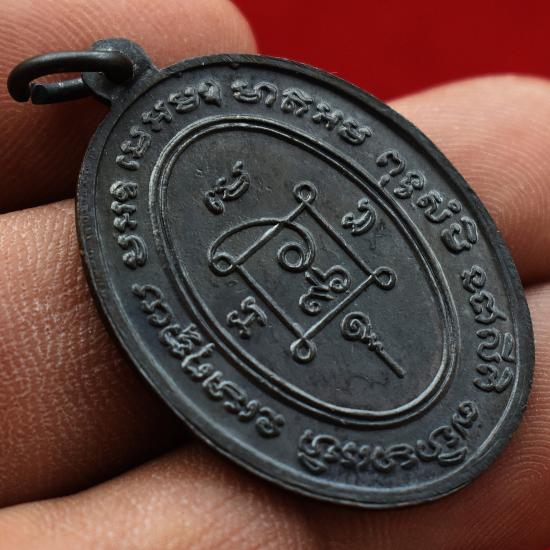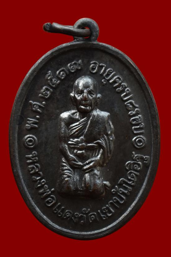 เหรียญคุกเข่า รุ่นสุดท้าย พิมพ์สองขีดบาง เนื้อทองแดง ปี 2517 หลวงพ่อแดง วัดเขาบันไดอิฐ จ.เพชรบุรี + บัตรรับรองพระแท้การันตีพระ