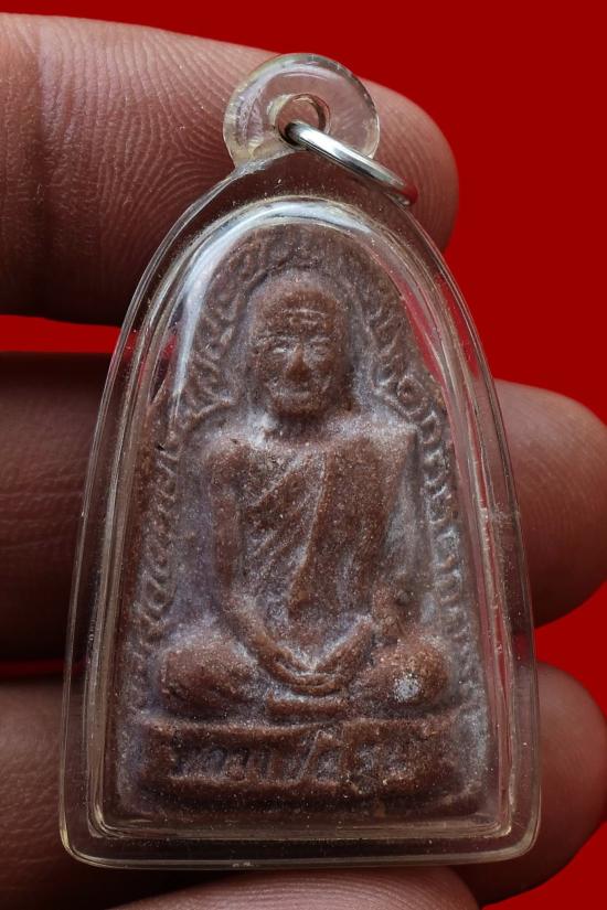 พระผงรูปเหมือนหลังยันต์ รุ่นแรก เนื้อผงชานหมาก ปี 2514 หลวงปู่สี วัดเขาถ้ำบุญนาค จ.นครสวรรค์ เลี่ยมพลาสติก มาพร้อมบัตรรับรองพระแท้การันตีพระ