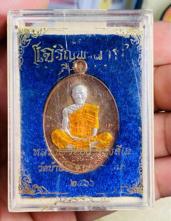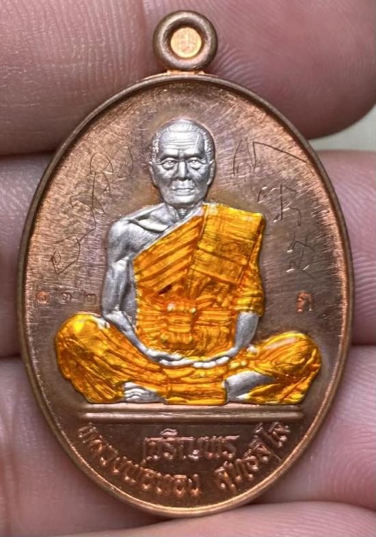#แดงเคาะแรก# หลวงพ่อทอง วัดบ้านไร่ เหรียญเจริญพรล่าง เนื้อทองแดง ยกหน้ากากเงิน ลงยา อยู่ในชุดกรรมการ หมายเลข122