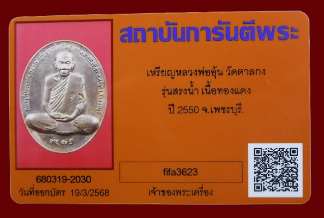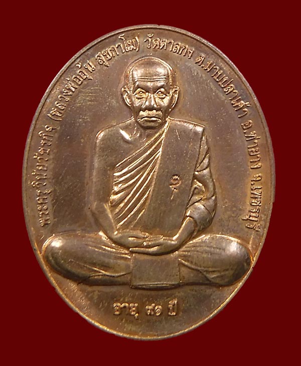 แดงที่เคาะแรก !!! เหรียญรุ่นสรงน้ำ พิมพ์ใหญ่ หลวงพ่ออุ้น วัดตาลกง ปี2550 + บัตรพระแท้